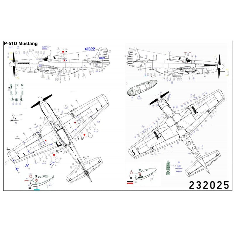 Stencils for P-51 D/K Mustang model in 1/32 scale. Wet transfer technology means that decal doesn't leave any signs of varnish or typical film after its application, so only text or symbols stay attached to the surface. Suitable for kits from Tamiya, Revell.