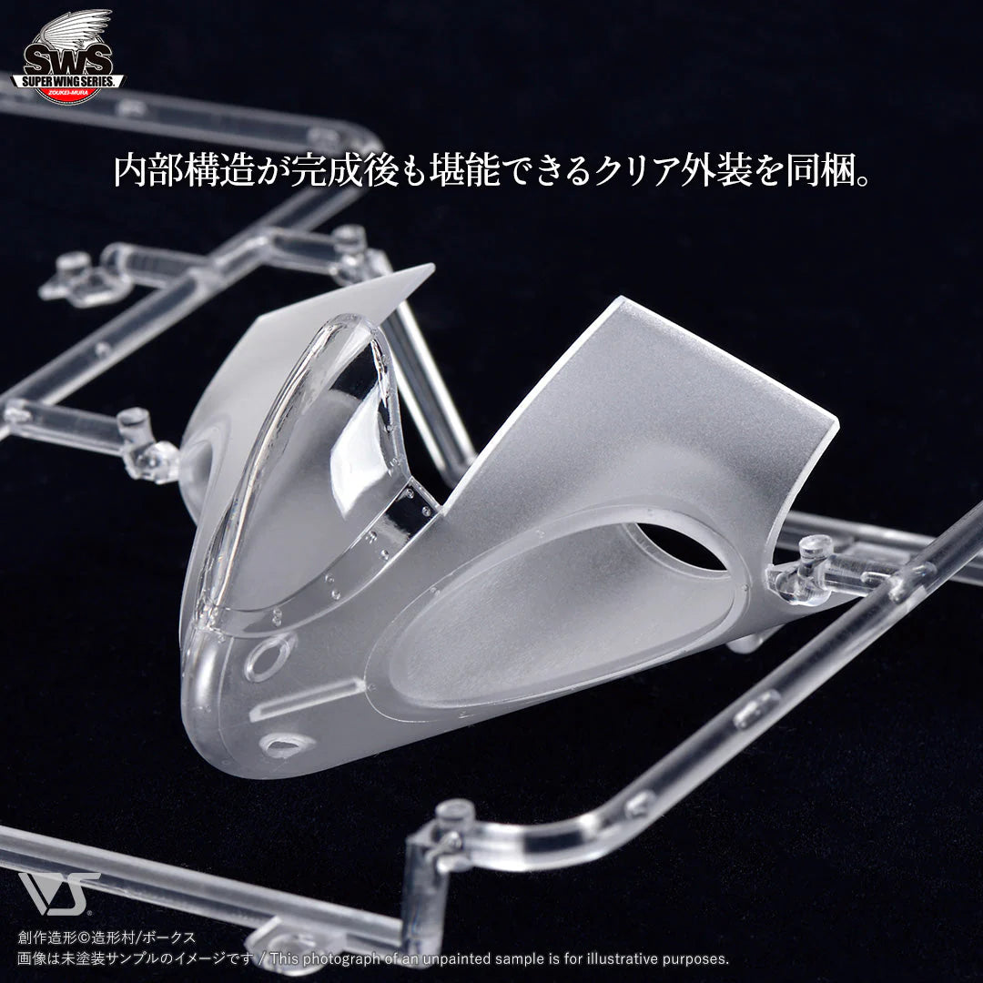 This kit offers build options for either the single-seat or two-seat model and the clear exterior parts showcase the detailed internal structure.