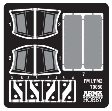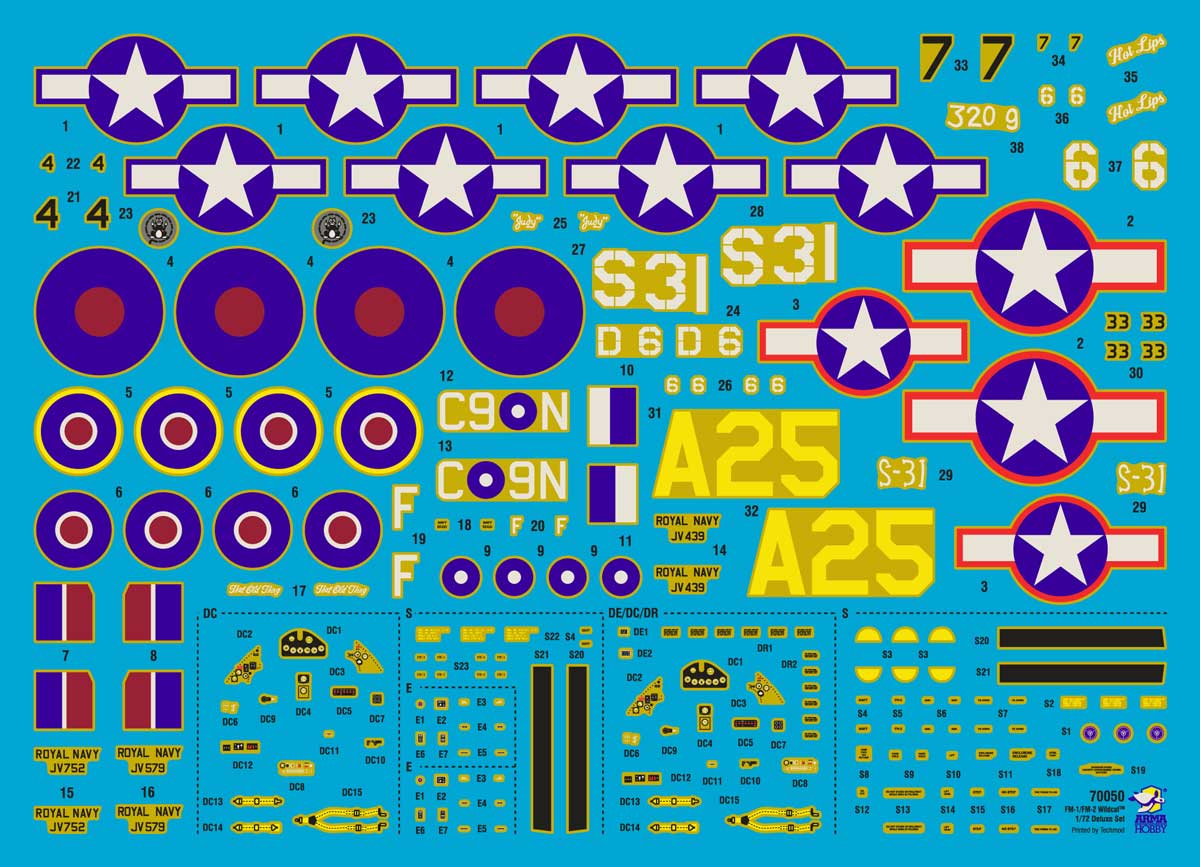 Double combo. Set includes two different versions of Wildcat, with photoetched parts and masks for each of them. Extra photoetched parts for FM-1 conversion. Two carrier flight deck sections from plywood.