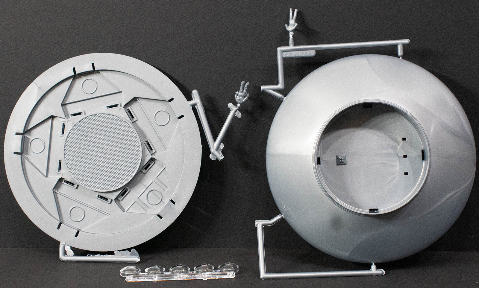 Now in Stock! 1/72 scale plastic model kit. Atlantis has purchased the tooling for this classic Aurora Kit. Assembly required. Saucer measures 7 inches across when complete. Can be displayed with landing gear up or down. Cockpit cover can be removed to display the detailed interior with figures. Comes with detailed instructions and a color reproduction of the original Sell-Sheet used by the Aurora Plastics Corp when the kit was originally released. 31 parts molded in silver and clear. Skill level 2 for ages 12 and up.