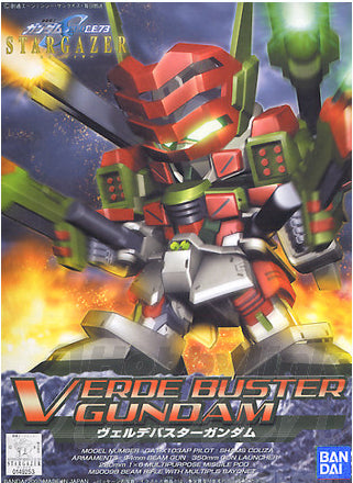 This fantastic little super-deformed version of Verde Buster Gundam comes in colored plastic runners with polycaps for joints. With parts that snap together easily, it requires no cement or paint to complete, but you will need to paint it if you want it to be accurate. It comes with all the weapon loadouts as seen in the "Gundam Seed Stargazer" Original Net Animation series