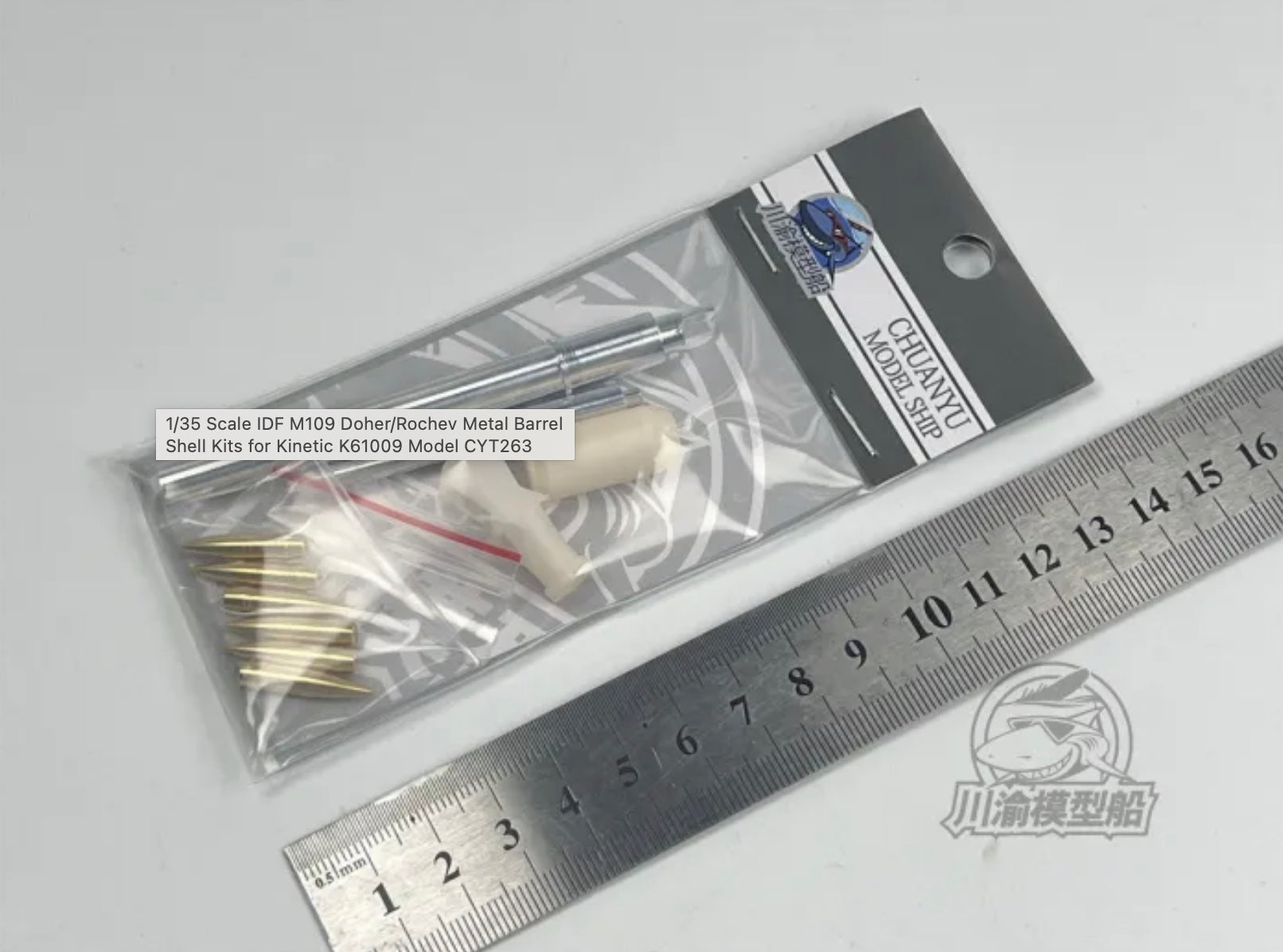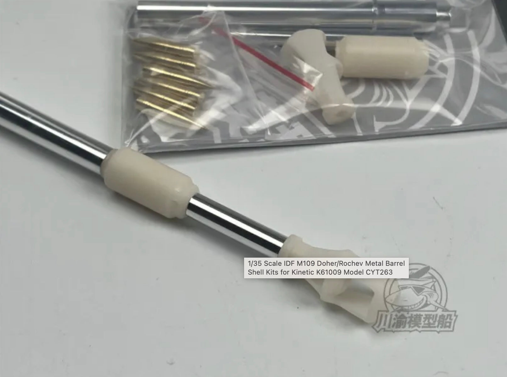 1/35 Turned metal Barrel with resin muzzle brake and evacuator and 6 brass shells