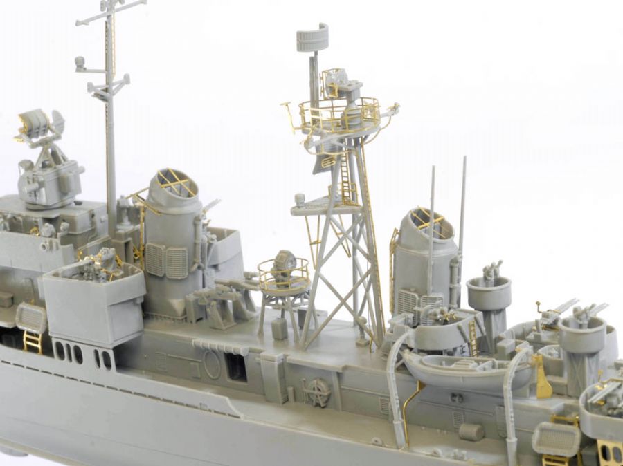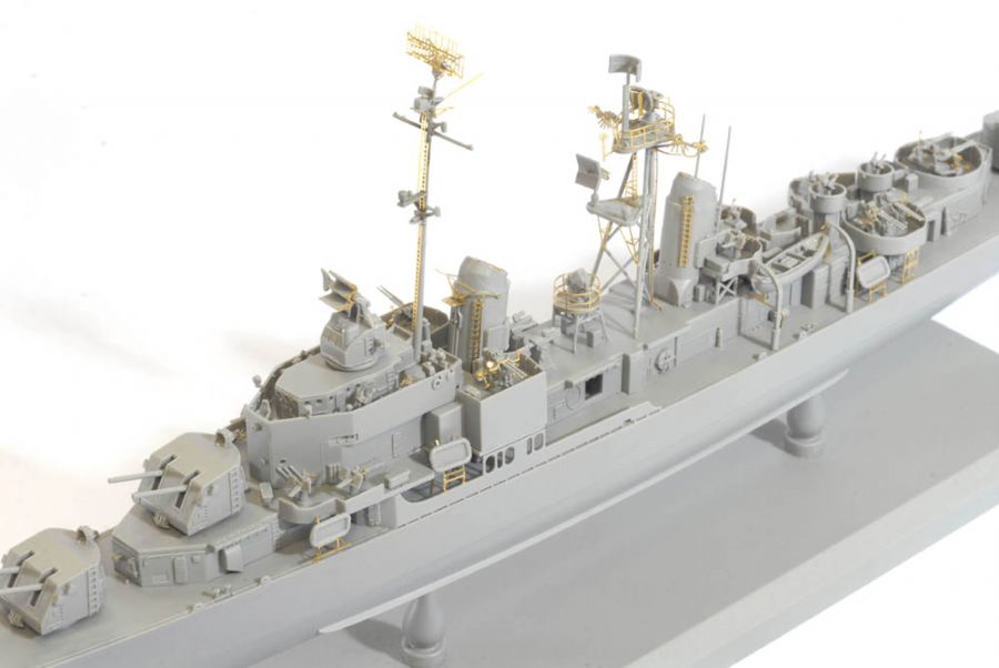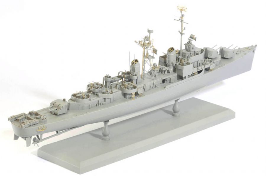 Dragon has come up with another exciting subject in its 1/350 scale warship range…this time of U.S.S. Chevalier (DD-805). This is Dragon’s second Gearing-class destroyer following the earlier release of U.S.S. Gearing DD-710. This destroyer was commissioned into the US Navy late in WWII, on 9 January 1945 to be exact. After sailing into the Pacific, U.S.S. Chevalier arrived in time for the bombardment of Wake Island on 1 August, before steaming into Tokyo Bay on 26 August. Reclassified as a radar picket destroyer (DDR-805) in March 1949, she served successive combat tours during the Korean War. In 1962 U.S.S. Chevalier reverted to her original DD-805 classification. In 1972 a change of ownership occurred when she was transferred to the Republic of Korea Navy and was renamed ROKS Chung Buk. The 3,460-ton destroyer was eventually scrapped in 2000 after a long service life.