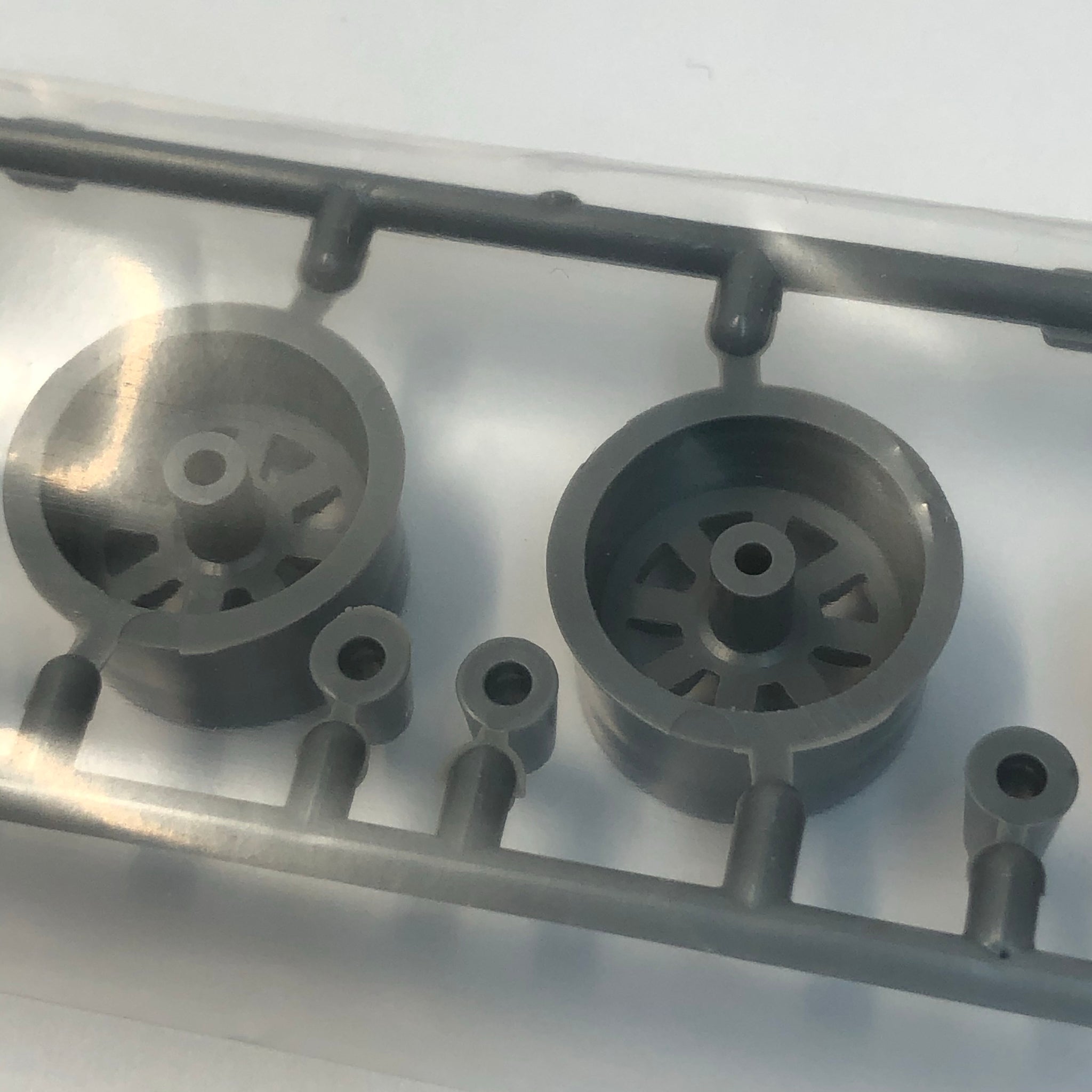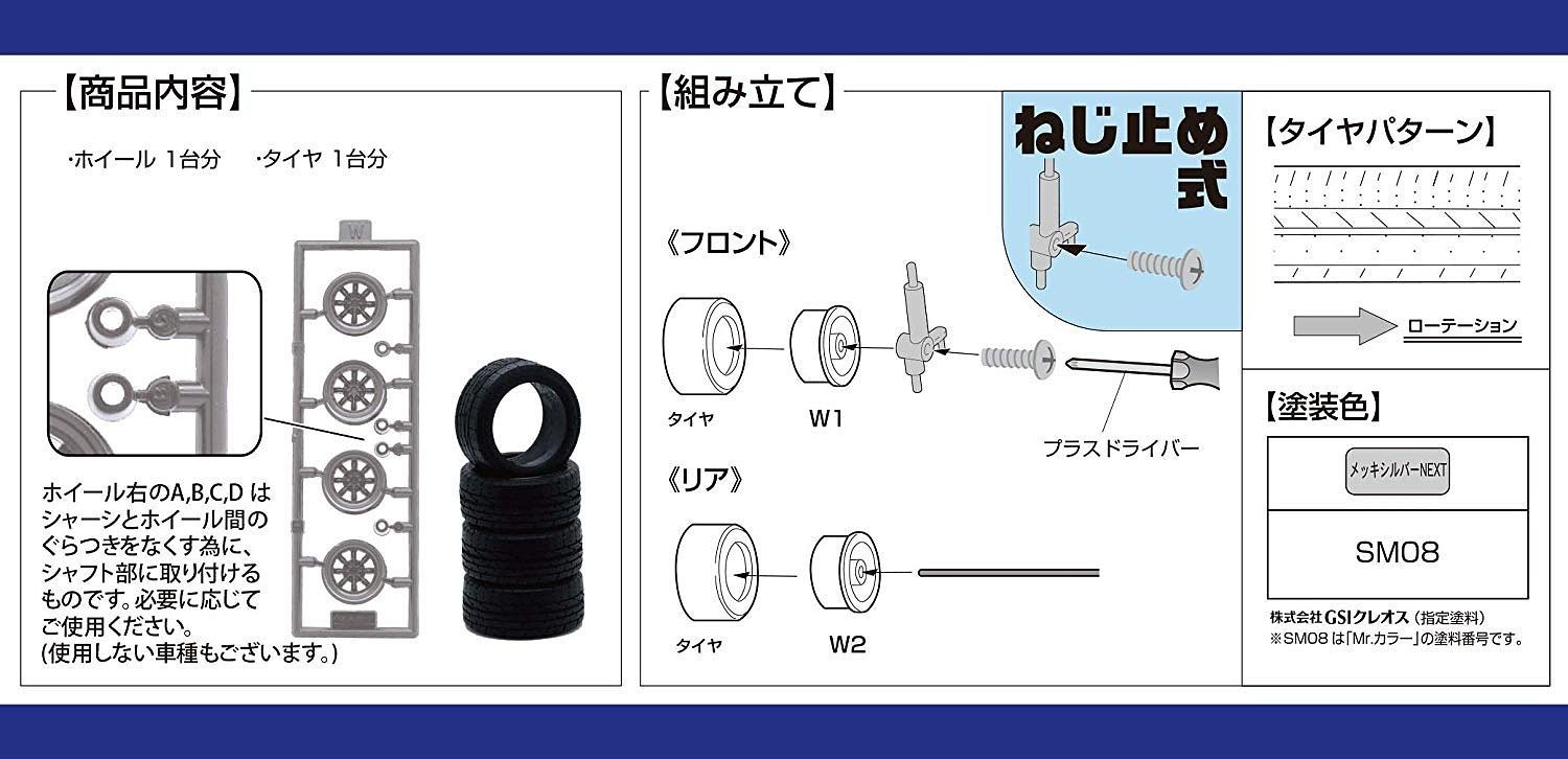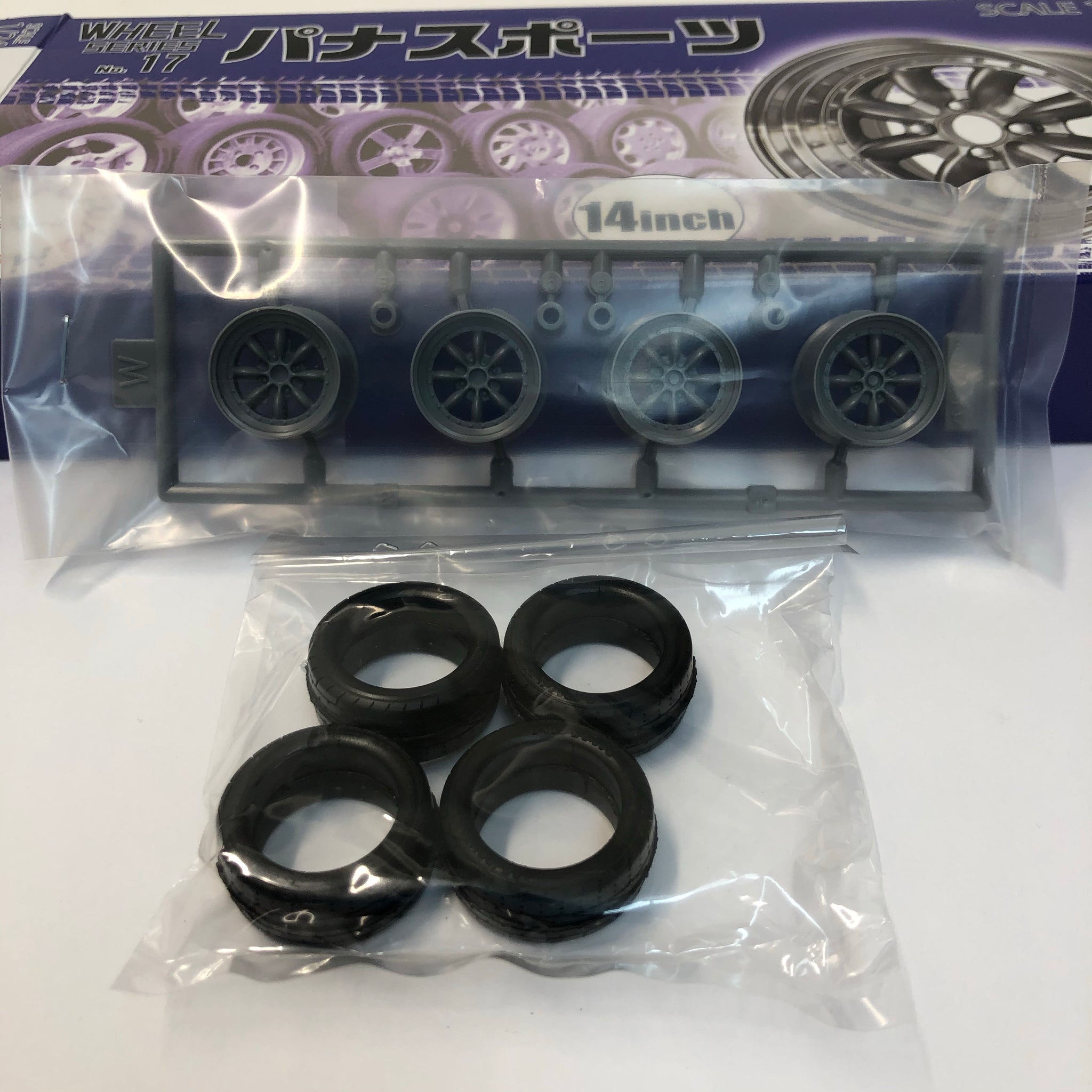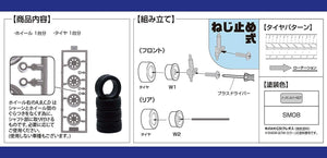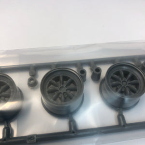 This set of 1/24 scale set includes one set of wheels, one set of tires, decals, and polycaps for assembly.