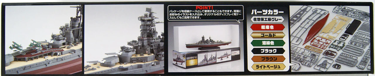 This kit of the IJN battleship Kongo, part of Fujimi's Warship Next line, features snap-fit assembly and is molded in color! The first production run of this kit will include a new deck with a wooden pattern. (Late production runs of this kit will not include the deck, so if yours does not have that part, it is not part of the first production run.) A base is provided for display, too.