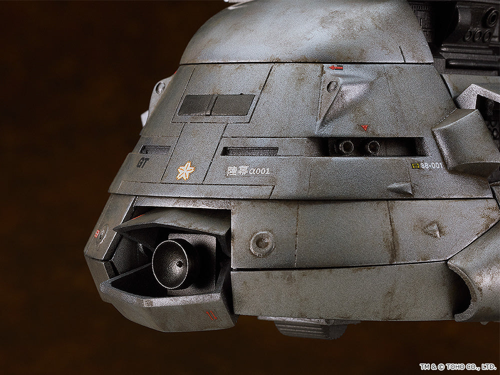 The Main Sky Battle Tank Super X from 1984's "The Return of Godzilla" gets a new "MODEROID" model kit from Good Smile Company! It has lots of features to vary its display -- the concealed turret at the top can be deployed, and the telescoping barrels of the main gun and Type 68 Kai 84 Type 30 Rocket have been recreated too. The cover of the 1800mm Yoso Searchlight and fuselage hatch can be displayed open or closed. The jet fans on the underside of the fuselage are movable, and the 300mm Kano Gun M29C is also movable; its barrel can be swiveled as well. The Super X's parts have been molded in color, and waterslide decals are included; you can get a great result just by assembling it and applying the decals! This model is the same scale as the Moderoid X2 (sold separately). Place your order today!