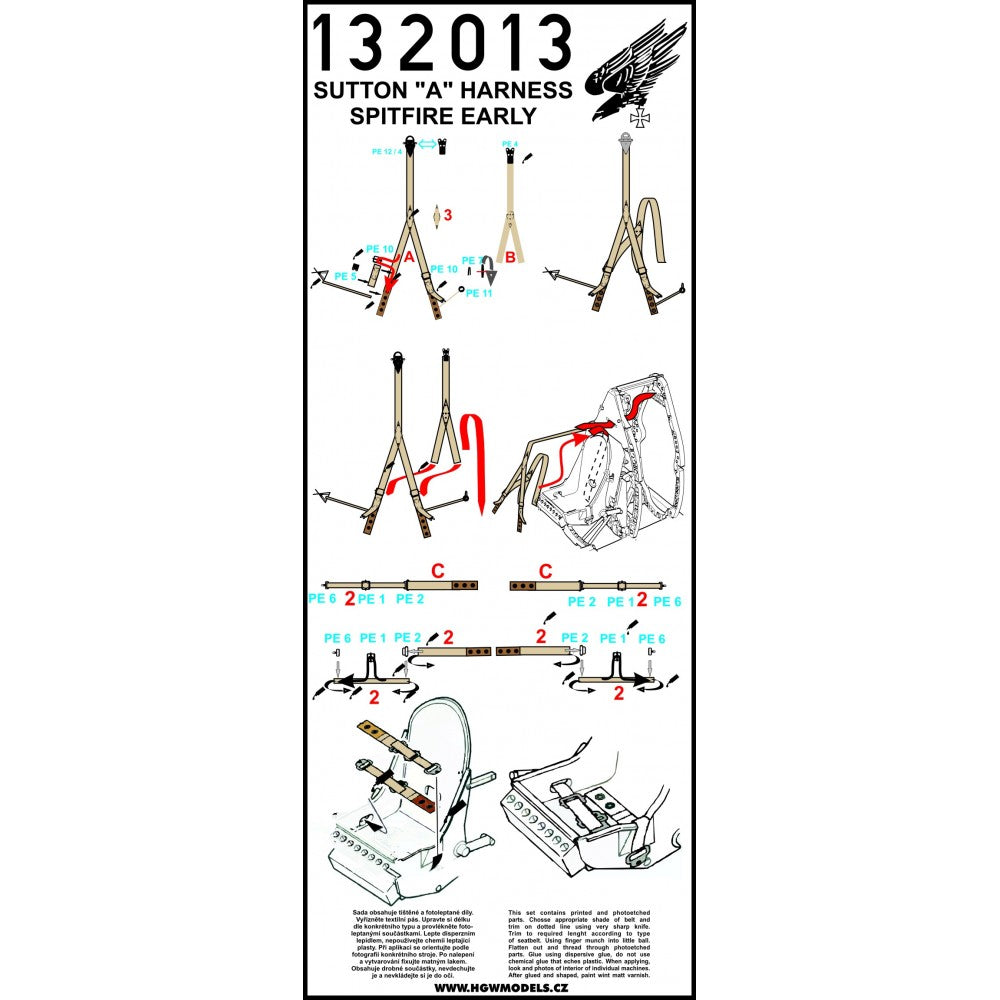 This set contains printed and photoetched parts. Choose appropriate shade of belt and trim on dotted line using very sharp knife. Trim to required length according to the type of seatbelt. Using fingers munch into little ball. Flatten out and thread through photoetched parts. Glue using white glue, do not use chemical glue that eches plastic. When applying, look at photos of cockpit of individual machines. After glued and shaped, paint with matt varnish.HGW has a large selection of great detail sets, Unfortunately we cannot stock them all. If there is an HGW item we don't stock that you are interested in, please contact us!