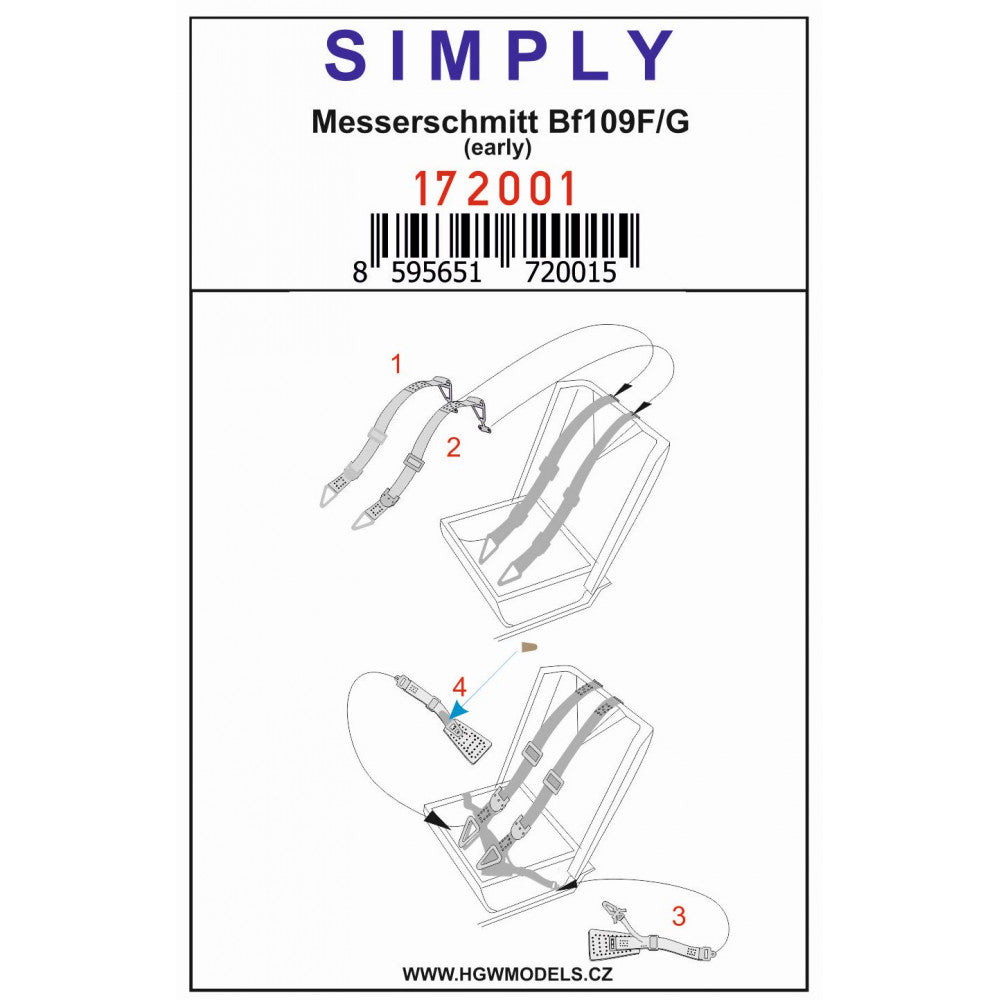 HGW 1/72 German Bf109F/G Transfer Film Seatbelts (2) 172001