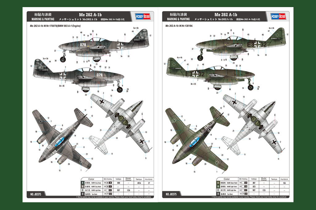 HobbyBoss 1/48 German Messerschmitt Me 262 A-1b 80375