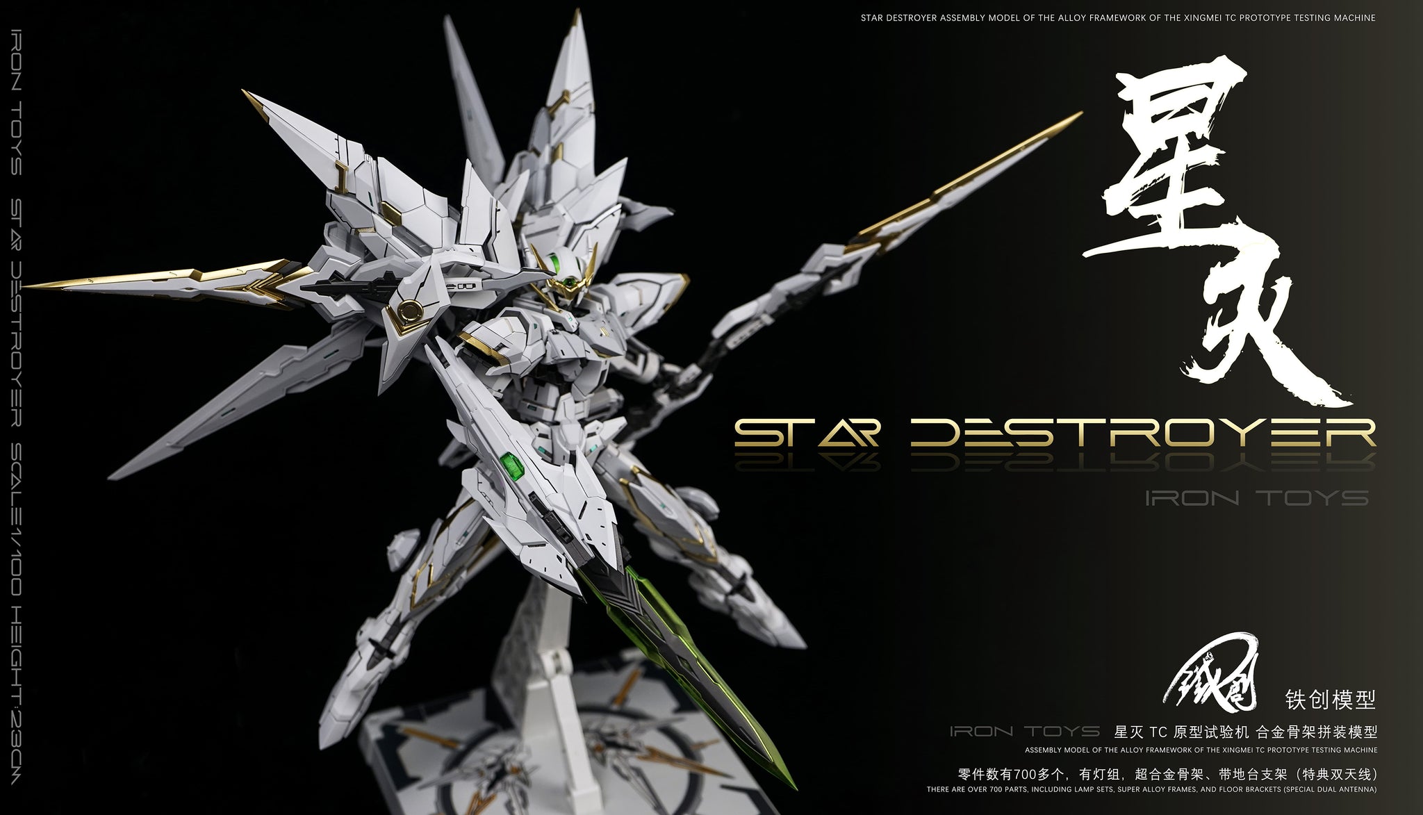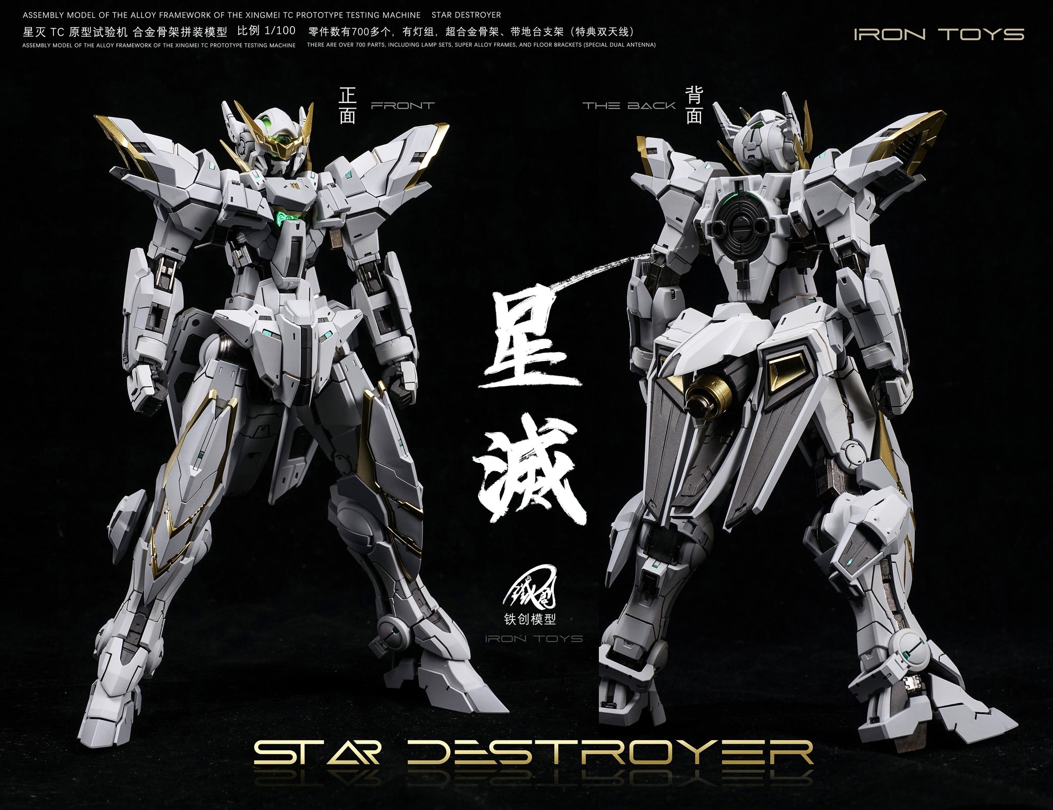 Star Destroyer (TC Prototype Test Robot) 1/100 scale model kit from Iron Toys! This impressive model kit features a mecha inspired design with a white and gold color scheme. It features an alloy frame that provides the figure the ability to create various poses. Be sure to add this model kit to your collection!