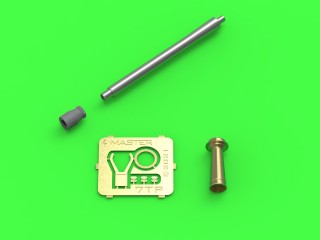 The set includes turned aluminum and brass parts, 3D printed resin muzzle break and PE parts.