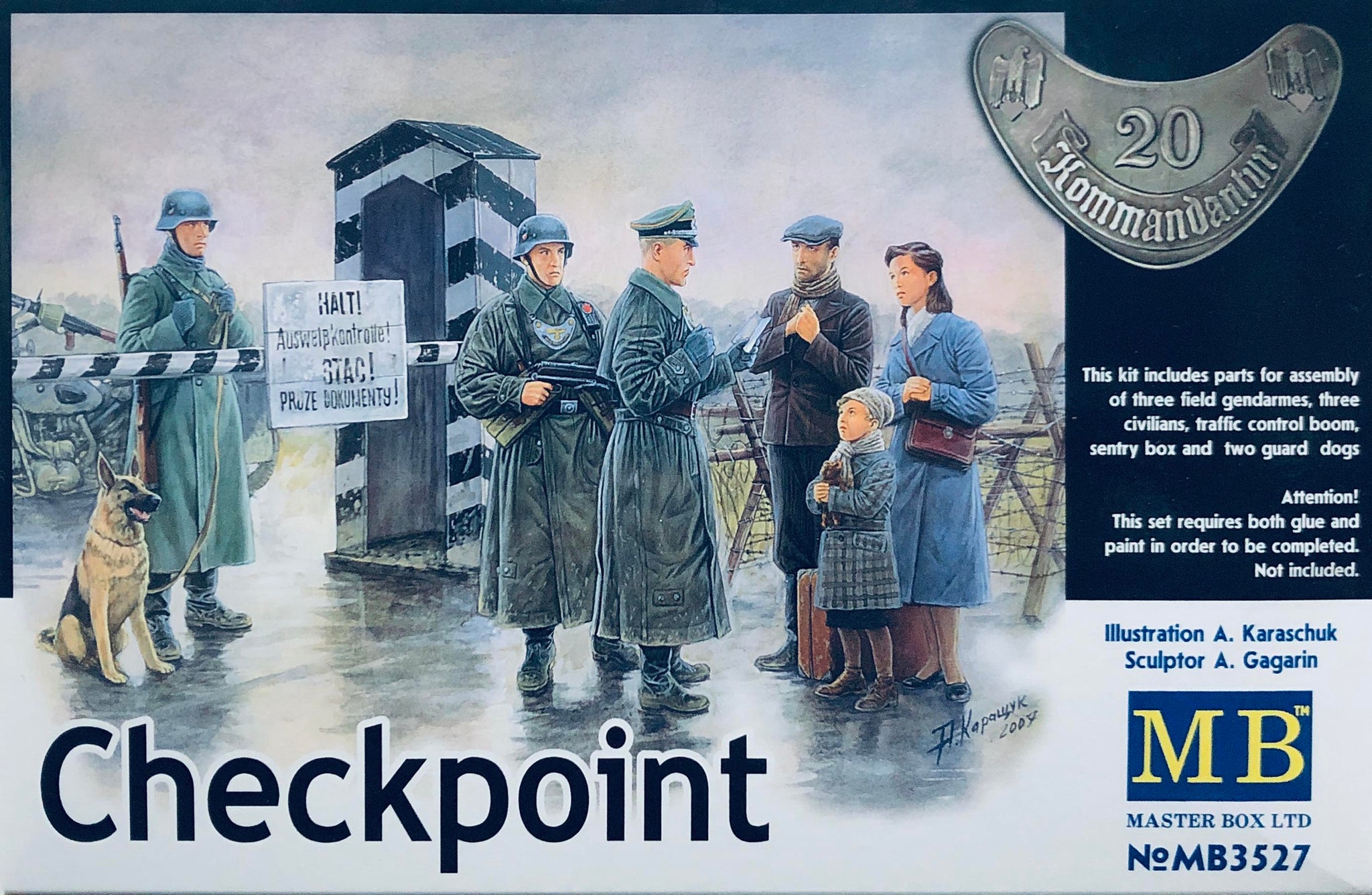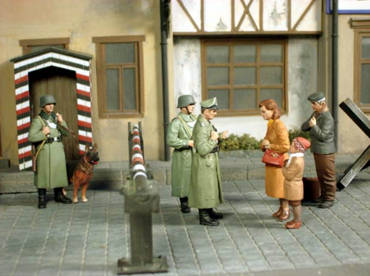 For use with 1/35 dioramas. Includes 6 figures, 2 dogs, and checkpoint