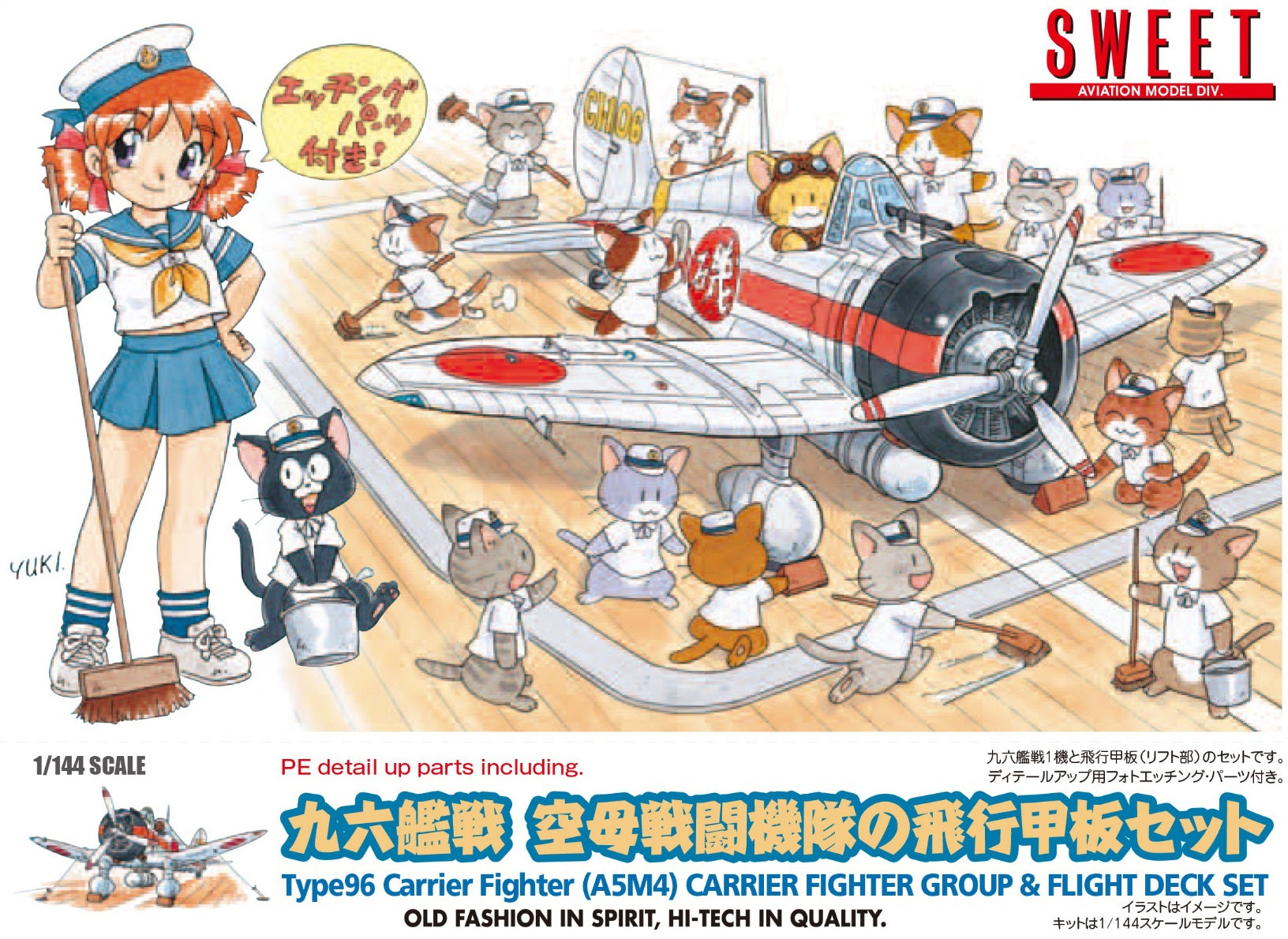 From Sweet comes a 1/144 model kit featuring both the Type 96 Carrier Fighter A5M4 as well as a flight deck for you to display your model on when completed! The aircraft kit is finely detailed and parts come molded in an eggshell-white color. Clear parts, decals, and photo-etched parts are included to add even more detail to your kit. The included flight deck parts are molded in gray. Order today!
